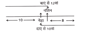 10. एक कक्षा में सभी 20 विद्यार्थी उत्तर की ओर मुख करके एक सीधी रेखा में खड़े हैं। नेहा दाईं ओर के छोर से 10वें स्थान पर है, जबकि नलिन बाईं ओर के छोर से 12वें स्थान पर हैं। नेहा और नलिन के बीच कितने विद्यार्थी खड़े हैं? [SSC CHSL Tier II (10/01/2024)]