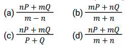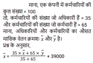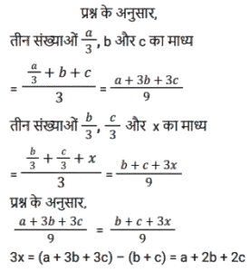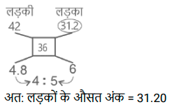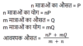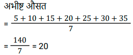 औसत (SSC) (Part-VI)Total Questions: 5021. एक परीक्षा में 50 छात्रों का औसत प्राप्तांक 66 है। कुल छात्रों में से 40% लड़कियां हैं और शेष लड़के हैं। लड़कों का औसत प्राप्तांक लड़कियों की तुलना में 20% कम है। लड़कियों का औसत प्राप्तांक ज्ञात कीजिए। [SSC CHSL 24/05/2022 (Afternoon)](a) 70(b) 80(c) 75(d) 65Correct Answer: (c) 75Solution:22. एक कंपनी में केवल दो प्रकार के कर्मचारी, श्रमिक और अधिकारी हैं। 35% कर्मचारी अधिकारी हैं और एक अधिकारी का औसत मासिक वेतन एक कर्मचारी के संयुक्त औसत मासिक वेतन से ₹39,000 अधिक है। एक अधिकारी और एक कर्मचारी के औसत मासिक वेतन के बीच अंतर ज्ञात कीजिए? [SSC CHSL 25/05/2022 (Afternoon)](a) ₹52,650(b) ₹50,700(c) ₹64,350(d) ₹60,000Correct Answer: (d) ₹60,000Solution:23. यदि n राशिओं का औसत P है और m राशिओं का औसत Q है, तो (m + n) राशिओं का औसत क्या होगा? [SSC CHSL 25/05/2022 (Evening)](a)(b)(c)(d)Correct Answer: (d)Solution:24. तीन संख्याओं a/3, b और c का माध्य वही है, जो संख्याओं b/3, c/3 और x का माध्य है। 3x का मान क्या है ? (जहाँ a, b, c धनात्मक संख्याएँ हैं) [SSC CHSL 26/05/2022 (Afternoon)](a) b + c(b) a + 2b + 2c(c) a(d) a + 3b + 3cCorrect Answer: (b) a + 2b + 2cSolution:25. 45 विद्यार्थियों की एक कक्षा में 20 लड़कियां हैं, जिन्होंने 50 अंकों की एक परीक्षा में औसतन 42 अंक प्राप्त किए हैं। यदि कक्षा का औसत अंक 36 है, तो लड़कों के औसत अंक क्या हैं? [SSC CHSL 27/05/2022 (Morning)](a) 32.50(b) 32.1(c) 30.8(d) 31.20Correct Answer: (d) 31.20Solution:26. पहली संख्या दूसरी संख्या का एक तिहाई है। दूसरी संख्या, तीसरी संख्या का 1.5 गुना है। तीसरी संख्या, चौथी संख्या की तीन गुनी है। यदि चारों संख्याओं का औसत 10 है, तो सबसे बड़ी संख्या ज्ञात कीजिए ? [SSC CHSL 27/05/2022 (Evening)](a) 12(b) 18(c) 16(d) 15Correct Answer: (b) 18Solution:27. एक परिवार में दो दादा-दादी, दो माता-पिता और चार पोते-पोतियां हैं। दादा-दादी की औसत आयु 67 वर्ष, माता-पिता की 35 वर्ष और पोते-पोतियों की औसत आयु 9 वर्ष है। परिवार की औसत आयु क्या है? [SSC CHSL 30/05/2022 (Morning)](a) 40(b) 30(c) 36(d) 45Correct Answer: (b) 30Solution:28. -10 से 35 तक के पूर्णांक की 5 से विभाज्य प्राकृत संख्याओं का औसत ज्ञात कीजिए। [SSC CHSL 30/05/2022 (Afternoon)](a) −13.88(b) 17.5(c) 15(d) 20Correct Answer: (d) 20Solution:29. एक कंपनी में केवल दो प्रकार के कर्मचारी हैंः मज़दूर और अधिकारी। एक अधिकारी का औसत मासिक वेतन एक कर्मचारी के संयुक्त औसत मासिक वेतन से ₹78,000 अधिक है, जबकि एक कर्मचारी का संयुक्त औसत मासिक वेतन एक मज़दूर के औसत मासिक वेतन से ₹42,000 अधिक है। उस कंपनी में सभी कर्मचारियों का कितना प्रतिशत अधिकारी हैं ? [SSC CHSL 30/05/2022 (Evening)](a) 28%(b) 35%(c) 30%(d) 32%Correct Answer: (b) 35%Solution:30. 4 सदस्यों के परिवार का औसत वजन 45 kg है। दादा और दादी परिवार से मिलने आते हैं। अब परिवार के 6 सदस्यों का औसत वजन 48 kg है। दादा-दादी का औसत वजन (kg में) ज्ञात कीजिए। [SSC CHSL 31/05/2022 (Afternoon)](a) 53(b) 52(c) 51(d) 54Correct Answer: (d) 54Solution:Submit Quiz« Previous12345Next »