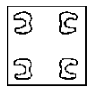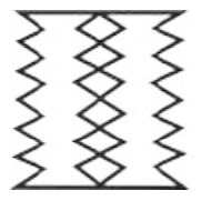 निम्नलिखित आकृति में पैटर्न वाली एक पारदर्शी शीट दी गई है। विकल्पों में से पहचानें कि मध्य क्षैतिज रेखा पर पारदर्शी शीट को मोड़ने पर पैटर्न कैसा दिखाई देगा।
