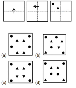 कागज मोड़ना (भाग-II)Total Questions: 5031. कागज के एक टुकड़े को मोड़ने का क्रम और मोड़े गए कागज को जिस तरह से काटा गया है, उसे निम्नलिखित प्रश्न आकृतियों में दिखाया गया है। अनफोल्ड होने पर यह पेपर (संबंधित विकल्पों में) कैसा दिखेगा ? [SSC CHSL 05/07/2024 (1st Shift)](a)(b)(c)(d)Correct Answer: (a)Solution:32. कागज के एक टुकड़े को मोड़ने का क्रम और मोड़े गए कागज को जिस तरह से काटा गया है, उसे निम्नलिखित प्रश्न आकृतियों में दिखाया गया है। अनफोल्ड होने पर यह पेपर (संबंधित विकल्पों में) कैसा दिखेगा ? [SSC CHSL 05/07/2024 (2nd Shift)](a)(b)(c)(d)Correct Answer: (d)Solution:33. कागज के एक टुकड़े को मोड़ने का क्रम और मोड़े गए कागज को जिस तरह से काटा गया है, उसे निम्नलिखित प्रश्न आकृतियों में दिखाया गया है। अनफोल्ड होने पर यह पेपर (संबंधित विकल्पों में) कैसा दिखेगा ? [SSC CHSL 05/07/2024 (3rd Shift)](a)(b)(c)(d)Correct Answer: (a)Solution:34. कागज के एक टुकड़े को मोड़ने का क्रम और मोड़े गए कागज को जिस तरह से काटा गया है, उसे निम्नलिखित प्रश्न आकृतियों में दिखाया गया है। अनफोल्ड होने पर यह पेपर (संबंधित विकल्पों में) कैसा दिखेगा ? [SSC CHSL 08/07/2024 (1st Shift)](a)(b)(c)(d)Correct Answer: (d)Solution:35. कागज के एक टुकड़े को मोड़ने का क्रम और मोड़े गए कागज को जिस तरह से काटा गया है, उसे निम्नलिखित प्रश्न आकृतियों में दिखाया गया है। अनफोल्ड होने पर यह पेपर (संबंधित विकल्पों में) कैसा दिखेगा ? [SSC CHSL 08/07/2024 (1st Shift)](a)(b)(c)(d)Correct Answer: (a)Solution:36. कागज के एक टुकड़े को मोड़ने का क्रम और मोड़े गए कागज को जिस तरह से काटा गया है, उसे निम्नलिखित प्रश्न आकृतियों में दिखाया गया है। अनफोल्ड होने पर यह पेपर (संबंधित विकल्पों में) कैसा दिखेगा ? [SSC CHSL 09/07/2024 (3rd Shift)](a)(b)(c)(d)Correct Answer: (d)Solution:37. कागज के एक टुकड़े को मोड़ने का क्रम और मोड़े गए कागज को जिस तरह से काटा गया है, उसे निम्नलिखित प्रश्न आकृतियों में दिखाया गया है। अनफोल्ड होने पर यह पेपर (संबंधित विकल्पों में) कैसा दिखेगा ? [SSC CHSL 10/07/2024 (1st Shift)](a)(b)(c)(d)Correct Answer: (c)Solution:38. कागज के एक टुकड़े को मोड़ने का क्रम और मोड़े गए कागज को जिस तरह से काटा गया है, उसे निम्नलिखित प्रश्न आकृतियों में दिखाया गया है। अनफोल्ड होने पर यह पेपर (संबंधित विकल्पों में) कैसा दिखेगा ? [SSC CHSL 10/07/2024 (2nd Shift)](a)(b)(c)(d)Correct Answer: (c)Solution:39. कागज के एक टुकड़े को मोड़ने का क्रम और मोड़े गए कागज को जिस तरह से काटा गया है, उसे निम्नलिखित प्रश्न आकृतियों में दिखाया गया है। अनफोल्ड होने पर यह पेपर (संबंधित विकल्पों में) कैसा दिखेगा ? [SSC CHSL 10/07/2024 (3rd Shift)](a)(b)(c)(d)Correct Answer: (c)Solution:40. कागज के एक टुकड़े को मोड़ने का क्रम और मोड़े गए कागज को जिस तरह से काटा गया है, उसे निम्नलिखित प्रश्न आकृतियों में दिखाया गया है। अनफोल्ड होने पर यह पेपर (संबंधित विकल्पों में) कैसा दिखेगा ? [SSC CHSL 10/07/2024 (4th Shift)](a)(b)(c)(d)Correct Answer: (a)Solution:Submit Quiz« Previous12345Next »