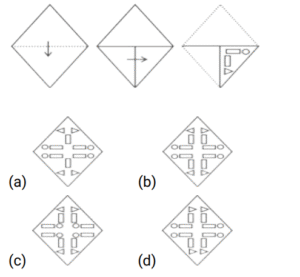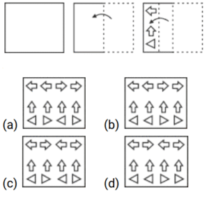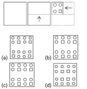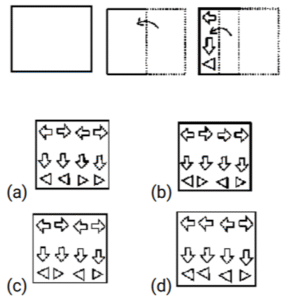 कागज मोड़ना (भाग-IV)Total Questions: 5031. कागज के एक टुकड़े को मोड़ने का क्रम और मोड़े गए कागज को जिस तरह से काटा गया है, उसे निम्नलिखित प्रश्न आकृतियों में दिखाया गया है। अनफोल्ड होने पर यह पेपर (संबंधित विकल्पों में) कैसा दिखेगा ? [SSC CHSL 26/05/2022 (Morning)](a)(b)(c)(d)Correct Answer: (d)Solution:32. कागज के एक टुकड़े को मोड़ने का क्रम और मोड़े गए कागज को जिस तरह से काटा गया है, उसे निम्नलिखित प्रश्न आकृतियों में दिखाया गया है। अनफोल्ड होने पर यह पेपर (संबंधित विकल्पों में) कैसा दिखेगा ? [SSC CHSL 26/05/2022 (Afternoon)](a)(b)(c)(d)Correct Answer: (c)Solution:33. कागज के एक टुकड़े को मोड़ने का क्रम और मोड़े गए कागज को जिस तरह से काटा गया है, उसे निम्नलिखित प्रश्न आकृतियों में दिखाया गया है। अनफोल्ड होने पर यह पेपर (संबंधित विकल्पों में) कैसा दिखेगा ? [SSC CHSL 27/05/2022 (Morning)](a)(b)(c)(d)Correct Answer: (c)Solution:34. कागज के एक टुकड़े को मोड़ने का क्रम और मोड़े गए कागज को जिस तरह से काटा गया है, उसे निम्नलिखित प्रश्न आकृतियों में दिखाया गया है। अनफोल्ड होने पर यह पेपर (संबंधित विकल्पों में) कैसा दिखेगा ? [SSC CHSL 27/05/2022 (Evening)](a)(b)(c)(d)Correct Answer: (a)Solution:35. कागज के एक टुकड़े को मोड़ने का क्रम और मोड़े गए कागज को जिस तरह से काटा गया है, उसे निम्नलिखित प्रश्न आकृतियों में दिखाया गया है। अनफोल्ड होने पर यह पेपर (संबंधित विकल्पों में) कैसा दिखेगा ? [SSC CHSL 31/05/2022 (Evening)](a)(b)(c)(d)Correct Answer: (b)Solution:36. कागज के एक टुकड़े को मोड़ने का क्रम और मोड़े गए कागज को जिस तरह से काटा गया है, उसे निम्नलिखित प्रश्न आकृतियों में दिखाया गया है। अनफोल्ड होने पर यह पेपर (संबंधित विकल्पों में) कैसा दिखेगा ? [SSC CHSL 02/06/2022 (Morning)](a)(b)(c)(d)Correct Answer: (d)Solution:37. कागज के एक टुकड़े को मोड़ने का क्रम और मोड़े गए कागज को जिस तरह से काटा गया है, उसे निम्नलिखित प्रश्न आकृतियों में दिखाया गया है। अनफोल्ड होने पर यह पेपर (संबंधित विकल्पों में) कैसा दिखेगा ? [SSC CHSL 02/06/2022 (Afternoon)](a)(b)(c)(d)Correct Answer: (c)Solution:38. कागज के एक टुकड़े को मोड़ने का क्रम और मोड़े गए कागज को जिस तरह से काटा गया है, उसे निम्नलिखित प्रश्न आकृतियों में दिखाया गया है। अनफोल्ड होने पर यह पेपर (संबंधित विकल्पों में) कैसा दिखेगा ? [SSC CHSL 03/06/2022 (Morning)](a)(b)(c)(d)Correct Answer: (c)Solution:39. कागज के एक टुकड़े को मोड़ने का क्रम और मोड़े गए कागज को जिस तरह से काटा गया है, उसे निम्नलिखित प्रश्न आकृतियों में दिखाया गया है। अनफोल्ड होने पर यह पेपर (संबंधित विकल्पों में) कैसा दिखेगा ? [SSC CHSL 06/06/2022 (Morning)](a)(b)(c)(d)Correct Answer: (b)Solution:40. कागज के एक टुकड़े को मोड़ने का क्रम और मोड़े गए कागज को जिस तरह से काटा गया है, उसे निम्नलिखित प्रश्न आकृतियों में दिखाया गया है। अनफोल्ड होने पर यह पेपर (संबंधित विकल्पों में) कैसा दिखेगा ? [SSC CHSL 06/06/2022 (Evening)](a)(b)(c)(d)Correct Answer: (d)Solution:Submit Quiz« Previous12345Next »