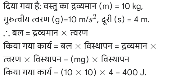 किया गया कार्य = बल × दूरी (d) = 0.52 × 10³ × 10 = 5.2 × 10³ = 5.2 kJ.