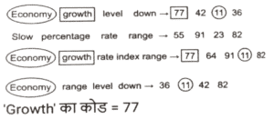 1. "Economy growth level down" को "77 42 11 36" के रूप में कूटबद्ध किया गया है।
