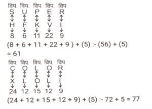 Solution:तर्क :- (अक्षरों के स्थानीय मान का योग) + (अक्षरों की संख्या)