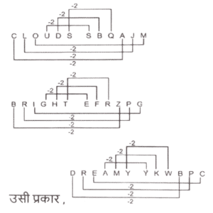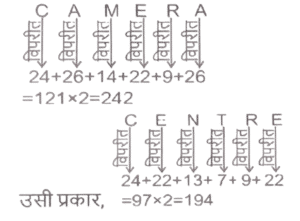 Solution:तर्क : शब्द में अक्षरों का स्थानीय मान जोड़ें और फिर उसमें से शब्द के अक्षरों की संख्या घटाएं
