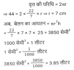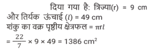क्षेत्रमिति (Part-IV)Total Questions: 5021. एक बेलनाकार बर्तन के आधार की परिधि 44 सेमी है और इसकी ऊंचाई 25 सेमी है। इसमें कितने लीटर जल आ सकता है? (π = 22/7 लें) [SSC CGL 17/09/2024 (1st Shift)](a) 38.5(b) 3.58(c) 3.85(d) 83.5Correct Answer: (c) 3.85Solution:22. M और N क्रमशः 12 cm और 8 cm त्रिज्या वाले दो वृत्तों के केंद्र हैं। QR वृत्तों की उभयनिष्ठ स्पशरिखा है। यदि MN = 16 cm है, तो QR की लंबाई कितनी होगी? [SSC CGL 17/09/2024 (2nd Shift)](a) 5√17 cm(b) 4√15 cm(c) 3√19 cm(d) 6√8 cmCorrect Answer: (b) 4√15 cmSolution:23. AB और CD केंद्र O वाले एक वृत्त में खींची गई दो समानांतर जीवाएँ हैं। दोनों जीवाओं के बीच की दूरी 21 cm है। यदि AB और CD की लंबाई क्रमशः 24 cm और 18 cm है, तो वृत्त की त्रिज्या किसके बराबर है? [SSC CGL 17/09/2024 (2nd Shift)](a) 15 cm(b) 20 cm(c) 18 cm(d) 24 cmCorrect Answer: (a) 15 cmSolution:24. 70 cm कोर वाले एक घनीय बर्तन में फिट की जा सकने वाली सबसे लंबी छड़ी की लंबाई ज्ञात करें। [SSC CGL 17/09/2024 (2nd Shift)](a) 35√3 cm(b) 70√3cm(c) 10√3 cm(d) 70√2 cmCorrect Answer: (b) 70√3cmSolution:25. एक समचतुर्भुज PQRS में, O एक आंतरिक बिंदु इस प्रकार है कि OP = OR है। ∠SOQ की अंशीय माप कितनी है? [SSC CGL 17/09/2024 (2nd Shift)](a) 120°(b) 180°(c) 240°(d) 200°Correct Answer: (b) 180°Solution:26. यदि एक बेलन की ऊँचाई और व्यास क्रमशः 12 cm और 28 cm है, तो कुल पृष्ठीय क्षेत्रफल और वक्र पृष्ठीय क्षेत्रफल का अनुपात ज्ञात कीजिए। [SSC CGL 17/09/2024 (2nd Shift)](a) 13:5(b) 10:3(c) 13:6(d) 11:6Correct Answer: (c) 13:6Solution:27. एक वृत्ताकार चाप केंद्र पर 15° का कोण बनाता है। यदि वृत्ताकार चाप की त्रिज्या 14 cm है, तो इस प्रकार बने त्रिज्यखंड का परिमाप (दो दशमलव स्थानों तक सही) क्या है? (π = 3.14) ? [SSC CGL 17/09/2024 (3rd Shift)](a) 17.66 cm(b) 21.32 cm(c) 35.32 cm(d) 31.66 cmCorrect Answer: (d) 31.66 cmSolution:28. एक आयताकार बगीचे का परिमाप 48 m है। यदि लंबाई, चौड़ाई से 6m अधिक है, तो बगीचे का क्षेत्रफल (m² में) क्या है? [SSC CGL 18/09/2024 (1st Shift)](a) 135(b) 96(c) 84(d) 112Correct Answer: (a) 135Solution:29. यदि आयतन 512 cm³ के तीन घनों को एक सिरे से दूसरे सिरे तक जोड़ा जाए, तो परिणामी घनाभ का पृष्ठीय क्षेत्रफल ज्ञात कीजिए। [SSC CGL 18/09/2024 (1st Shift)](a) 896 cm²(b) 986 cm²(c) 895 cm²(d) 869 cm²Correct Answer: (a) 896 cm²Solution:30. एक लंब वृत्तीय शंकु के आधार की त्रिज्या 9 cm है और इसकी तिर्यक ऊंचाई 49 cm है। शंकु का वक्र पृष्ठीय क्षेत्रफल ज्ञात करें। [SSC CGL 18/09/2024 (2nd Shift)](a) 1386 cm²(b) 1265 cm²(c) 1262 cm²(d) 1490 cm²Correct Answer: (a) 1386 cm²Solution:Submit Quiz« Previous12345Next »