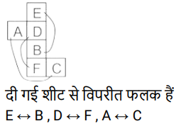 2. दी गई शीट को मोड़कर एक घन बनाया जाता है। निर्मित घन में 'F' वाले फलक के विपरीत फलक पर कौन-सा अक्षर होगा ? [SSC CPO 04/10/2023 (2nd Shift)]