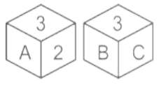 9. एक पासे के अलग - अलग फलकों पर छह अक्षर/अंक A, B, C, 1, 2 और 3 लिखे गए हैं। इस पासे की दो स्थिति याँ दिखाई गई हैं। C अक्षर वाले फलक के विपरीत फलक पर कौन-सा अक्षर/अंक है? [SSC CPO 05/10/2023 (3rd Shift)]