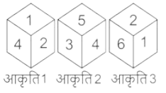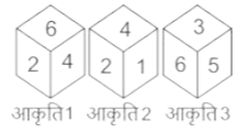 घन और पासा (भाग-IV)Total Questions: 5611. एक ही पासे की तीन विभिन्न स्थितियाँ प्रदर्शित हैं। '1' प्रदर्शित करने वाले फलक के विपरीत फलक पर कौन-सी संख्या है? [SSC CGL 08/12/2022 (3rd Shift)](a) 6(b) 3(c) 2(d) 4Correct Answer: (a) 6Solution:चित्र 1 और चित्र 2 से हम यह देख सकते हैं कि दो फलक (2 और 4) उभय-निष्ठ फलक है I इसलिए, फलक 6 फलक 1 के विपरीत है।12. एक ही पासे की चार अलग-अलग स्थितियाँ दर्शाई गई हैं, जिनमें से छह फलकों की संख्या 1 से 6 तक है। उस संख्या का चयन कीजिए जो 2' दर्शाने वाले फलक के विपरीत वाले फलक पर होगी। [SSC CGL 08/12/2022 (4th Shift)](a) 5(b) 3(c) 4(d) 6Correct Answer: (b) 3Solution:हम जानते हैं कि किसी भी घन के विपरीत फलक एक साथ नहीं आते हैं, आरेख के अनुसार एक घन के विपरीत फलक निम्नलिखित हैं, 1 → 4, 6 → 5, 2 → 3 अतः उपरोक्त व्यवस्था से हम स्पष्ट रूप से देख सकते हैं कि 2, 3 के विपरीत फलक पर है।13. एक ही पासे की तीन अलग-अलग स्थितियों को दर्शाया गया है। '1' दर्शाने वाले फलक के विपरीत फलक की संख्या ज्ञात कीजिए। [SSC CGL 09/12/2022 (3rd Shift)](a) 2(b) 6(c) 3(d) 4Correct Answer: (a) 2Solution:चित्र 1 और चित्र 3 से हम प्राप्त करते हैं, दो फलक (4 और 6) उभय-निष्ठ फलक हैं I इसलिए फलक 2 फलक 1 के विपरीत है14. एक ही पासे की तीन अलग-अलग स्थितियों को दिखाया (आकृति 1 से 3) गया है। '6' वाले फलक के विपरीत फलक पर संख्या ज्ञात कीजिए। [SSC CGL 12/12/2022 (1st Shift)](a) 1(b) 5(c) 4(d) 2Correct Answer: (b) 5Solution:हम जानते हैं कि किसी भी घन के विपरीत फलक एक साथ नहीं आते हैं, चित्र के अनुसार एक घन के विपरीत फलक निम्नलिखित हैं, 3 → 1, 4 → 2, 5 → 6 उपरोक्त व्यवस्था से हम कह सकते हैं कि 5, 6 के विपरीत है।15. एक ही पासे की दो अलग-अलग स्थितियां दर्शाई गई हैं, जिसके छह फलकों को 1 से 6 से क्रमांकित किया गया है। उस संख्या का चयन करें जो 6 दर्शाने वाले फलक के विपरीत फलक पर होगी। [SSC CPO 09/11/2022 (Morning)](a) 3(b) 4(c) 2(d) 5Correct Answer: (a) 3Solution:हम दिए गए पासो में देख सकते हैं कि संख्या 2 और 5 दोनो पासो में उभयनिष्ठ हैं, अतः 3, 6 के विपरीत है।16. एक ही पासे की तीन विभिन्न स्थितियाँ प्रदर्शित हैं। '2' प्रदर्शित करने वाले फलक के विपरीत फलक पर कौन-सी संख्या है? [SSC CPO 09/11/2022 (Afternoon)](a) 5(b) 3(c) 6(d) 1Correct Answer: (a) 5Solution:दिए गए सभी पासों की तुलना करने के बाद, विपरीत फलक हैं: (6, 4) और (1, 3). अतः हम कह सकते हैं कि 2, 5 का विपरीत फलक है।17. एक ही पासे की दो स्थितियां दर्शाई गई हैं। F अक्षर वाले फलक के विपरीत फलक पर कौन-सा अक्षर होगा? [SSC CPO 10/11/2022 (Morning)](a) B(b) D(c) C(d) ACorrect Answer: (a) BSolution:बिंदु B से पासे को घड़ी की दिशा में घुमाते हुए हम पाते हैं कि ये एक दूसरे के विपरीत फलक हैं। E → A, D → C, B → F उपरोक्त व्यवस्था से हम देख सकते हैं कि B, F के विपरीत है।18. एक ही पासे की तीन विभिन्न स्थितियाँ प्रदर्शित हैं। '4' प्रदर्शित करने वाले फलक के विपरीत फलक पर कौन-सी संख्या है? [SSC CPO 11/11/2022 (Morning)](a) 1(b) 2(c) 3(d) 6Correct Answer: (d) 6Solution:आकृति 1 और 3 से स्पष्ट है कि 4 के विपरीत फलक पर 6 है।19. एक ही पासे की तीन विभिन्न स्थितियाँ प्रदर्शित हैं। '6' प्रदर्शित करने वाले फलक के विपरीत 