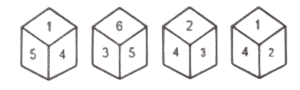 घन और पासा (भाग-IV)Total Questions: 5631. एक ही पासे की दो अलग-अलग स्थितियाँ दिखाई गई हैं, जिसके छह फलक 1 से 6 तक संख्याकिंत हैं। '5' और '4' फलकों के विपरीत संख्याओं का योग कितना है? [SSC CHSL 08/06/2022 (Evening)](a) 6(b) 4(c) 3(d) 5Correct Answer: (d) 5Solution:पासे (i) और (ii) की तुलना करने पर, 5 और 4 उभयनिष्ठ हैं। अतः , 6 और 1 एक दूसरे के विपरीत हैं। यानी 2 और 3 या 3 और 2 , 5 और 4 के विपरीत होंगे। तो, योग = 2 + 3 = 532. एक ही पासे की दो अलग-अलग स्थिति दिखाई गई हैं, जिसके छह फलक 1 से 6 तक अंकित हैं। उस संख्या का चयन करें जो '1' दर्शाने वाले के विपरीत फलक पर होगी। [SSC CHSL 10/06/2022 (Evening)](a) 3(b) 6(c) 5(d) 4Correct Answer: (b) 6Solution:यदि हम पासे (i) और (ii) की तुलना करें, तो 1 को छोड़कर सभी संख्याएँ दिखाई देती हैं और 6 दोहराव वाली संख्या हैं। अत: 6, 1 के विपरीत फलक पर होगा |33. एक पासे के विभिन्न फलकों पर छः अक्षर और चिन्ह H, h, I, @, % और $ लिखे गए हैं। इस पासे की दो स्थितियाँ दिखाई गई हैं। उस अक्षर या प्रतीक का चयन कीजिये जो 'H' वाले के विपरीत फलक पर होगा। [SSC CGL 11/04/2022 (Morning)](a) $(b) %(c) h(d) @Correct Answer: (d) @Solution:पासा 1 और 2 से हम यह निष्कर्ष निकालते हैं कि "@", "H" वाले फलक के विपरीत फलक पर है।34. एक ही पासे के चार अलग-अलग स्थिति दिखाई गई हैं, जिसमे 1 से 6 तक छह फलक दिखाए गए हैं। उस संख्या का चयन कीजिये जो संख्या '1' वाले फलक के विपरीत फलक पर होगी। [SSC CGL 11/04/2022 (Afternoon)](a) 6(b) 2(c) 4(d) 3Correct Answer: (d) 3Solution:पासे 3 और पासे 4 से हम यह निष्कर्ष निकाल सकते हैं कि संख्या 3 संख्या 1 वाले फलक के विपरीत फलक पर होगी।35. 80 cm भुजा वाले एक घन को सभी फलकों पर पीले रंग से रंगा जाता है और फिर प्रत्येक 8 cm भुजा वाले छोटे घनों में काटा जाता है। उन घनों की संख्या ज्ञात कीजिए जिनके तीनों फलक रंगे हुए हैं। [SSC CGL 12/04/2022 (Afternoon)](a) 32(b) 28(c) 8(d) 64Correct Answer: (c) 8Solution:36. 125 cm भुजा वाले एक घन को सभी फलकों पर लाल रंग से रंगा जाता है और फिर 25 cm भुजा वाले छोटे घनों में काटा जाता है। ऐसे छोटे घनों की संख्या ज्ञात कीजिए जिनके कम से कम दो फलक पेंट किए गए हों। [SSC CGL 12/04/2022 (Evening)](a) 48(b) 36(c) 44(d) 52Correct Answer: (c) 44Solution:दिया गया है : बड़ेघन की भुजा = 125 cm प्रत्येक छोटेघन की भुजा = 25 cm n = 125/25 = 5 हम जानते हैं कि 2 भुजाओं वाले घनों की संख्या = 12 (n - 2) = 12 (5 - 2) = 36 और 3 भुजाओं वाले घनों की संख्या = 8 (हमेशा) तो ऐसे छोटे घनों की संख्या जिनके कम से कम दो फलक रंगे हुए हों = 36 + 8 = 4437. एक ही गैर-मानक पासे की तीन अलग-अलग स्थितियों को दिखाया गया है। 'Q' अक्षर वाले फलक के विपरीत पृष्ठ पर कौन सा अक्षर होगा? [SSC CGL 18/04/2022 (Afternoon)](a) S(b) P(c) U(d) RCorrect Answer: (c) USolution:यहाँ विपरीत युग्म होंगे :- T→ P, S → R, Q → U. अतः U, Q के विपरीत फलक पर होगा ।38. 12 cm भुजा वाले एक घन के सभी फलकों को हरे रंग से रंगा जाता है और फिर 2 cm भुजा वाले छोटे- छोटे घनों में काटा जाता है। ऐसे छोटे घनों की संख्या ज्ञात कीजिए जिनका केवल एक फलक रंगा गया है। [SSC CGL 18/04/2022 (Evening)](a) 68(b) 96(c) 78(d) 49Correct Answer: (b) 96Solution:39. एक ही पासे की तीन अलग-अलग स्थिति दर्शाई गई है। इसका अध्ययन करें और पहचानें कि 