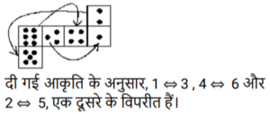 घन और पासा (भाग-IV)Total Questions: 5641. दी गई शीट को मोड़कर एक घन बनाया जाता है। इस प्रकार बने घन में अक्षरों का निम्नलिखित में से कौन सा युग्म एक दूसरे के विपरीत होगा? [SSC CGL 18/08/2021 (Morning)](a) D और F(b) A और D(c) E और B(d) E और CCorrect Answer: (a) D और FSolution:विपरीत जोड़े हैं:- E → A, C → B, F → D इसलिए विकल्प (a) सही उत्तर है।42. उस घन (घनों) का चयन कीजिए जो दी गई शीट को रेखाओं के अनुदिश मोड़कर बनाया जा सकता है। [SSC CGL 18/08/2021 (Afternoon)](a) केवल C और D(b) केवल A और D(c) केवल A और C(d) कोई आकृति नहीं बनाई जा सकती हैCorrect Answer: (d) कोई आकृति नहीं बनाई जा सकती हैSolution:विपरीत जोड़े हैं:- W → A, P → J, T → E और हम जानते हैं कि किसी भी पासे की विपरीत फलक एक साथ नहीं आती हैं इसलिए विकल्पों से कोई आकृति नहीं बनाई जा सकती है।43. एक ही पासे की तीन अलग-अलग स्थितियों को दिखाया गया है। जिसके फलकों पर A, B, C, D, E और F अक्षर अंकित हैं। उस अक्षर का चयन करें जो 'D' अक्षर वाले फलक के विपरीत फलक पर होगा। [SSC CGL 18/08/2021 (Evening)](a) A(b) C(c) B(d) FCorrect Answer: (c) BSolution:विपरीत जोड़े हैं:- E → C, D → B, F → A अतः B, D के विपरीत होगा |44. उन घनों का चयन कीजिए जो दी गई शीट को रेखाओं के अनुदिश मोड़कर बनाए जा सकते हैं। [SSC CGL 23/08/2021 (Morning)](a) केवल A, C और D(b) केवल A और D(c) केवल B, C और D(d) केवल B और CCorrect Answer: (b) केवल A और DSolution:विपरीत जोड़े हैं: - 1 → 7, 2 → 9, 5 → 8 और हम जानते हैं कि किसी भी पासे के विपरीत फलक एक साथ नहीं आते हैं इसलिए केवल विकल्प (b) में उपलब्ध पासे ही बनाए जा सकते है।45. जब दी गई शीट को एक घन बनाने के लिए मोड़ा जाता है, तो कौन-सा अक्षर 'N' दर्शाने वाले अक्षर के विपरीत होगा ? [SSC CHSL 12/04/2021 (Morning)](a) H(b) Z(c) B(d) ECorrect Answer: (d) ESolution:जब घन को मोड़ा जाएगा, तो विपरीत जोड़े होंगे:- Z → W , B → H और E → N. अतः E, N के विपरीत होगा |46. दी गई शीट को मोड़कर एक घन बनाया जाता है। इस प्रकार बने घन में अक्षरों का निम्नलिखित में से कौन-सा युग्म विपरीत दिशा में होगा? [SSC CHSL 13/04/2021 (Afternoon)](a) R तथा O(b) M तथा P(c) Q तथा P(d) N तथा QCorrect Answer: (a) R तथा OSolution:घन बनाने पर निम्नलिखित युग्म विपरीत फलकों पर होंगे:- M → Q, R → O, N → P इसलिए, विकल्प (a) सही है।47. उस घन (घनों) का चयन कीजिए जो दी गई शीट को रेखाओं के अनुदिश मोड़कर बनाया जा सकता है। [SSC CHSL 15/04/2021 (Evening)](a) केवल C और D(b) केवल B और C(c) केवल A और C(d) केवल A, C और DCorrect Answer: (a) केवल C और DSolution:कागज को क्यूबिक आकार में मोड़ने के बाद, विपरीत जोड़े होंगे - 6 ↔ 5, 1 ↔ 3, 4 ↔ 2 विपरीत जोड़े एक दूसरे के आसन्न नहीं हो सकते हैं। अतः केवल C और D ही संभव घन हैं।48. एक ही पासे के तीन अलग-अलग स्थान (X, Y और Z) दिखाए गए हैं। '!' चिन्ह वाले चेहरे के विपरीत चेहरे पर कौन सा प्रतीक है? [SSC CHSL 19/04/2021 (Evening)](a) %(b) $(c) @(d) #Correct Answer: (a) %Solution:यहाँ विपरीत फलक हैं:- # →$, % → ! , * → @ अतः %, ! के विपरीत है |49. दी गई शीट को मोड़कर एक घन बनाया जाता है। इस प्रकार बने घन में, 4 बिंदुओं वाले फलक के विपरीत कितने बिंदु हैं? [SSC CHSL 04/08/2021 (Morning)](a) 2(b) 5(c) 6(d) 1Correct Answer: (c) 6Solution:50. दी गई शीट को मोड़कर एक घन बनाया जाता है। इस प्रकार बने घन में, $ के वि
