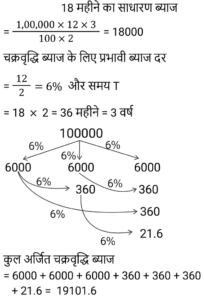 चक्रवृद्धि ब्याज Part-3Total Questions: 5031. 400 रुपये की राशि 2 साल बाद r% वार्षिक चक्रवृद्धि ब्याज पर 441 रुपये हो जाएगी। r का मान ज्ञात कीजिए। [RRB NTPC 07/04/2021 (Morning)](a) 6%(b) 5%(c) 7%(d) 8%Correct Answer: (b) 5%Solution:32. वह राशि ज्ञात कीजिए जिसके लिए 5% प्रति वर्ष की दर से चक्रवृद्धि ब्याज में अंतर और 3 वर्ष के लिए साधारण ब्याज का अंतर 244 रुपये है। [RRB NTPC 08/04/2021 (Evening)](a) Rs. 32,000(b) Rs. 31,500(c) Rs. 35,000(d) Rs. 32,250Correct Answer: (a) Rs. 32,000Solution:33. 5,000 रुपये पर 6% प्रति वर्ष की दर से 3 वर्षों के लिए चक्रवृद्धि ब्याज ज्ञात कीजिए, जो वार्षिक रूप से संयोजित है [निकटतम पूर्णांक तक सही]। [RRB NTPC 23/07/2021 (Morning)](a) Rs. 955(b) Rs. 618(c) Rs. 900(d) Rs. 956Correct Answer: (a) Rs. 955Solution:34. 12% वार्षिक ब्याज की दर से ₹1,00,000 की राशि पर 18 माह के चक्रवृद्धि ब्याज और साधारण ब्याज का अंतर ज्ञात कीजिए, जबकि ब्याज को अर्द्धवार्षिक आधार पर चक्रवृद्धि किया जाता है ? [RRB NTPC 24/07/2021 (Evening)](a) Rs. 11,016(b) Rs. 110.16(c) Rs. 1101.6(d) Rs. 1.11016Correct Answer: (c) Rs. 1101.6Solution:35. प्रति वर्ष चक्रवृद्धि ब्याज की किस दर से 1,250 रुपये की राशि 3 वर्षों में 1,488.77 रुपये हो जाएगी ? [RRB NTPC 26/07/2021 (Evening)](a) 6.5%(b) 7%(c) 7.5%(d) 6%Correct Answer: (d) 6%Solution:36. कम से कम वर्षों की संख्या जिसमें 20% चक्रवृद्धि ब्याज पर निवेश की गई राशि उसके दोगुने से अधिक हो जाएगी : [RRB NTPC 31/07/2021 (Morning)](a) 6(b) 3(c) 4(d) 5Correct Answer: (c) 4Solution:37. ₹1000 की धनराशि पर 10% वार्षिक ब्याज दर से 1.5 वर्ष के ब्याज की गणना करें, जब ब्याज की गणना अर्ध-वार्षिक चक्रवृद्धि आधार पर की जाती है। [RRB JE 22/05/2019 (Afternoon)](a) ₹160.55(b) ₹167.36(c) ₹150.25(d) ₹157.63Correct Answer: (d) ₹157.63Solution:38. एक निश्चित राशि पर 12.5% की दर से 2 वर्ष के चक्रवृद्धि ब्याज और साधारण ब्याज का अंतर ₹45 है। वह राशि ज्ञात कीजिए। [RRB JE 22/05/2019 (Afternoon)](a) ₹2440(b) ₹2000(c) ₹2880(d) ₹3000Correct Answer: (c) ₹2880Solution:39. किसी निश्चित धनराशि पर, 2 वर्ष का चक्रवृद्धि ब्याज ₹309 और साधारण ब्याज ₹300 होता है। वार्षिक ब्याज दर ज्ञात करें। [RRB JE 22/05/2019 (Evening)](a) 6%(b) 8%(c) 9%(d) 7%Correct Answer: (a) 6%Solution:40. किस मूलधन पर 10% की दर पर 3 वर्ष के चक्रवृद्धि ब्याज और साधारण ब्याज का अंतर ₹.620 होगा ? [RRB JE 24/05/2019 (Evening)](a) ₹.24000 (b) ₹.25000 (c) ₹.20000(d) ₹.18000Correct Answer: (c) ₹.20000Solution:Submit Quiz« Previous12345Next »