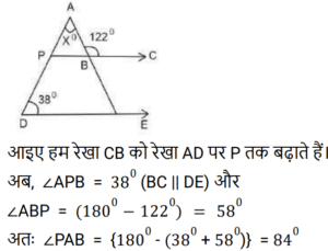 1. दी गई आकृति में BC ∥ DE है, x का मान ज्ञात कीजिए। [RRB NTPC 09/01/2021 (Morning)]