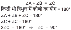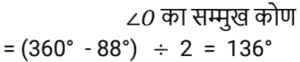 ज्यामिति Part-6Total Questions: 5031. एक आयताकार मैदान की लंबाई और चौड़ाई का अनुपात 6 : 5 है। यदि मैदान का परिमाप 110 मीटर है, तो चौड़ाई (मीटर में) क्या होगी? [RRB NTPC 13/03/2021 (Morning)](a) 30 (b) 20 (c) 15 (d) 25Correct Answer: (d) 25Solution:32. त्रिभुज ABC के दो कोणों ∠A और ∠B का योग उसके तीसरे कोण के बराबर होता है। तीसरे कोण का माप ज्ञात कीजिए? [RRB NTPC 14/03/2021 (Evening)](a) 100° (b) 60° (c) 90°(d) 50°Correct Answer: (c) 90°Solution:33. एक सम बहुभुज की भुजाओं की संख्या ज्ञात कीजिए, यदि प्रत्येक आंतरिक कोण 165° है। [RRB NTPC 15/03/2021 (Morning)](a) 24 (b) 20 (c) 26 (d) 22Correct Answer: (a) 24 Solution:34. दिए गए वृत्त में, व्यास AB को P पर इस प्रकार बढ़ाया गया है कि वह जीवा CD को पूरा करने के लिए विस्तारित हो। यदि रेखाखंड AP, CP और DP की लंबाई क्रमशः 12 सेमी, 8 सेमी और 6 सेमी है, तो वृत्त की त्रिज्या की लंबाई कितनी है? [RRB NTPC 19/03/2021 (Morning)](a) 2 cm (b) 6 cm (c) 8 cm (d) 4 cmCorrect Answer: (d) 4 cmSolution:35. केंद्र O वाले दिए गए वृत्त में, केंद्र पर न्यू्न कोण 88° है। वृत्त के भीतर खींचे गए चतुर्भुज में O के सममुख कोण का माप क्या है? [आकृति पैमाने पर नहीं खींची गई है] [RRB NTPC 19/03/2021 (Morning)](a) 88°(b) 68°(c) 272°(d) 136°Correct Answer: (d) 136°Solution:36. यदि किसी त्रिभुज में सबसे बड़ा कोण 75° है। त्रिभुज के सबसे छोटे कोण का न्यूनतम संभव मान क्या है? [RRB NTPC 21/03/2021 (Evening)](a) 30° (b) 40° (c) 76° (d) 70°Correct Answer: (a) 30° Solution:37. एक अष्टभुज के आंतरिक कोणों के मापों का योग कितना होता है? [RRB NTPC 27/03/2021 (Morning)](a) 720° (b) 1080° (c) 150° (d) 810°Correct Answer: (a) 720° Solution:38. एक त्रिभुज की परित्रिज्या 9 सेमी है जबकि इसकी अंतःत्रिज्या 4 सेमी है। त्रिभुज के परिकेंद्र और केंद्र के बीच की दूरी कितनी है? [RRB NTPC 27/03/2021 (Evening)](a) 4 cm (b) 2 cm (c) 3 cm(d) 5 cmCorrect Answer: (c) 3 cmSolution:39. यदि AB/AC = BD/DC तो ∠ABC है: [RRB NTPC 01/04/2021 (Morning)](a) 92° (b) 32° (c) 64°(d) 74°Correct Answer: (c) 64°Solution:40. △ABC का क्षेत्रफल ज्ञात कीजिए। [RRB NTPC 01/04/2021 (Morning)](a) 32 cm² (b) 160 cm²(c) 320 cm² (d) 240 cm²Correct Answer: (b) 160 cm²Solution:Submit Quiz« Previous12345Next »