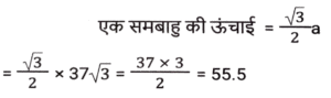 3. यदि एक समबाहु त्रिभुज की प्रत्येक भुजा 37√3 cm है, तो इसका शीर्षलम्ब (cm में) ज्ञात कीजिए। [SSC CGL 23/09/2024 (3rd Shift)]