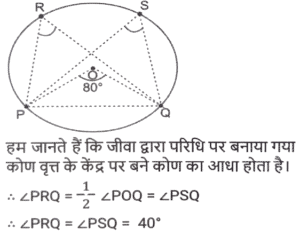 7. मान लीजिए C एक वृत्त है, जिसका केंद्र O है और PQ, C पर एक लघु चाप है। मान लीजिए कि R और S, C पर PQ के दीर्घ चाप पर दो बिंदु हैं। यदि PQ, O पर 80° का कोण अंतरित करता है, तो क्रमशः ∠ PRQ और ∠ PSQ ज्ञात कीजिए। [SSC CGL 24/09/2024 (2nd Shift)]
