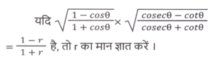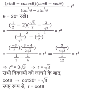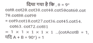 5. यदि θ = 9⁰ है, तो cotθ. cot2θ. cot3θ. cot4θ. cot5θ. cot6θ. cot7θ. cot8θ. cot9θ का मान ज्ञात करें। [SSC CHSL 10/07/2019 (Evening)]