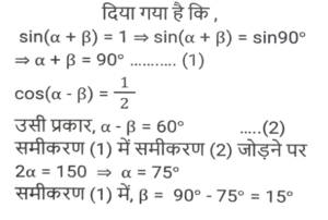 4. यदि α और ẞ दोनों न्यून कोण हैं तथा यह दिया गया है कि (α + β) = 1, cos (α - β) = 1/2 है, तो α और ẞ के मान ज्ञात करें। [SSC CHSL 10/07/2019 (Evening)]