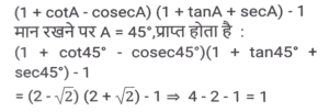 1. (1 + cotA - cosecA) (1 + tanA + secA) - 1 का मान क्या होगा? [SSC CPO 09/11/2022 (Afternoon)]