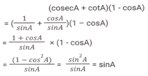 9. (cosecA + cotA) (1 - cosA) का मान क्या है? [SSC CPO 10/11/2022 (Evening)]