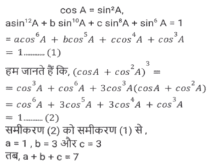 10. यदि cosA = sin²A, और a sin¹² A + b sin¹⁰A + c sin⁸A + sin⁶A = 1, तो a + b + c = ? [SSC CPO 11/11/2022 (Morning)]