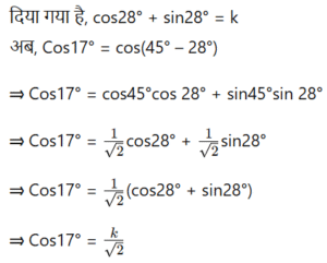 4. अगर cos28° + sin28° = k , तो cos17° बराबर है: [NTPC CBT - I 12/03/2021 (Evening)]