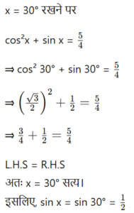 8. यदि cos²x + sin x = 5/4, तो 'sin x' का मान ज्ञात कीजिए। [RRB JE 24/05/2019 (Morning)]