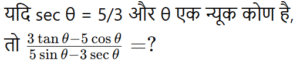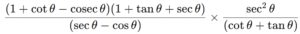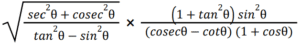 त्रिकोणमिति Part-2Total Questions: 5021. निम्न में से कौन सा विकल्प दिए गए समीकरण के दाएँ पक्ष (RHS) को दर्शाता है? [Group D 01/09/2022 (Morning) ](a) sec A + tan A(b) cosec A(c) tan A(d) cos A + 1Correct Answer: (d) cos A + 122. ज्ञात कीजिए। [Group D — 01/09/2022 (Afternoon)](a) 4 (b) 0 (c) 1 (d) −1Correct Answer: (d) −123. अगर (sinβ + cosecβ)² + (secβ − cosβ)² = a + tan²β + cot²β, तो a का मान है: [Group D — 01/09/2022 (Evening)](a) 3 (b) 0 (c) 2 (d) 5Correct Answer: (a) 3 24. मान ज्ञात कीजिए। [Group D — 02/09/2022 (Afternoon)](a)(b)(c)(d)Correct Answer: (b)25. मान लीजिए कि 0° < θ < 90° है। [ Group D 02/09/2022 (Evening) ] का मान इनमें से किसके बराबर होगा?(a)(b)(c)(d)Correct Answer: (c)26. का मान (0° < θ < 90°) में किसके बराबर है? [Group D — 05/09/2022 (Morning)](a) 2 sec θ (b) 2 cosec θ(c) sin θ (d) cos θCorrect Answer: (b) 2 cosec θ27. जहाँ 0° < θ < 90° है, तो k का मान ज्ञात कीजिए। [Group D — 05/09/2022 (Evening)](a) cos θ (b) sin θ(c) cot θ (d) sec θCorrect Answer: (b) sin θ28. (sinA+cosecA)²+(cosA+secA)² का मान ज्ञात कीजिए। [Group D — 06/09/2022 (Morning)](a) 5 + cosec² 𝐴 − sec² 𝐴(b) 5 + cosec² 𝐴 + sec² 𝐴(c) 5 + sec 𝐴 + cosec 𝐴(d) 5 − cosec² 𝐴 + sec 𝐴Correct Answer: (b) 5 + cosec² 𝐴 + sec² 𝐴29. (1 + tan 20° + sec 20°)(1 + cot 20° − cosec 20°) का मान ज्ञात कीजिए। [Group D — 06/09/2022 (Afternoon)](a) 1 (b) −1 (c) 0 (d) 2Correct Answer: (d) 230. मान क्या है? [Group D — 08/09/2022 (Morning)](a) 2 sec 40° (b) 2 cot 40° (c) 2 cosec 40° (d) 2 tan 40°Correct Answer: (a) 2 sec 40° Submit Quiz« Previous12345Next »