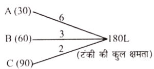 पाइप A, B और C एक टंकी को क्रमशः 30 घंटे, 60 घंटे तथा 90 घंटे में भर सकते हैं। A, B तथा C को बारी-बारी से प्रत्येक एक घंटे के लिए खोला जाता है, पहले घंटे में शुरुआत C से की जाती है, उसके बाद क्रमशः दूसरे तथा तीसरे घंटे में B और A को खोला जाता है, इसी तरह टंकी कितने घंटे में पूरी भर जाएगी?