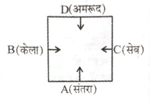 - C, केले को पसंद करने वाले व्यक्ति के बाएँ से दूसरे स्थान पर बैठा है।