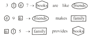 E, F, G और H एक दूसरे से समान दूरी पर एक सीधी रेखा में बैठे है (लेकिन जरूरी नहीं कि इसी क्रम में हो)। उनमें से कुछ का मुख दक्षिण की ओर है, जबकि कुछ का मुख उत्तर की ओर है।