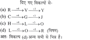 Both the immediate neighbours of H face the same direction./ H के दोनों निकटतम पड़ोसियों का मुख एक ही दिशा में है।