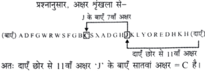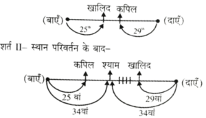 दिल्ली अधीनस्थ सेवा चयन बोर्ड परीक्षा, 2023 TGT कम्प्यूटर विज्ञान 24-06-2023 (Shift-III)Total Questions: 1001. निम्नलिखित में से कौन-सा अक्षर श्रृंखला के दाएं छोर से 11वें अक्षर के बाएं से 7वां है?(बाएं) ADFGWRWSFGBCSXADGHJKLYOREDHKH (दाएं)(a) S(b) B(c) C(d) GCorrect Answer: (c) CSolution:प्रश्नानुसार, अक्षर श्रृंखला से-अतः दाएँ छोर से 11वाँ अक्षर 'J' के बाएँ सातवां अक्षर = C है।2. दिए गए कथनों और निष्कर्षों को ध्यानपूर्वक पढ़ें। यह मानते हुए कि कथनों में दी गई जानकारी सत्य है, भले ही यह सामान्य रूप से ज्ञात तथ्यों से भिन्न प्रतीत होती हो, तय करें कि दिए गए निष्कर्षों में से कौन-सा/से निष्कर्ष कथनों का तार्किक रूप से अनुसरण करता/ते है/हैं।कथन:A. कुछ कुत्ते, बकरियां हैं। B. सभी बकरियां , मोर हैं। C. सभी मोर, गरुड़ हैं।निष्कर्ष:I. कुछ मोर, कुत्ते हैं। II. सभी कुत्ते, मोर हैं। III. सभी मोर, गिद्ध हैं।(a) केवल निष्कर्ष I अनुसरण करता है।(b) निष्कर्ष I, II और III सभी अनुसरण करते हैं।(c) निष्कर्ष II और III अनुसरण करते हैं।(d) निष्कर्ष I और II अनुसरण करते हैं।Correct Answer: (a) केवल निष्कर्ष I अनुसरण करता है।Solution:प्रश्नानुसार, सही आकृति निम्नलिखित है:निष्कर्ष: I. (✓) II. (✗) III. (✗)अतः स्पष्ट है कि केवल निष्कर्ष I अनुसरण करता है।3. चार संख्या-युग्म दिए गए हैं, जिनमें से तीन किसी प्रकार से एक जैसे हैं और एक असंगत है। उस असंगत संख्या-युग्म का चयन करें।(a) 23 — 69(b) 17 — 51(c) 13 — 39(d) 27 — 81Correct Answer: (d) 27 — 81Solution:दिए गए विकल्पों से-(a) 23 - 69 → (69 - 23)/2 = 46/2 = 23 (अभाज्य)(b)17 - 51 → (51 - 17)/2 = 34/2 = 17 (अभाज्य)(c)13 - 39 → (39 - 13)/2 = 26/2 = 13 (अभाज्य)(d) 27 - 81 → (81 - 27)/2 = 54/2 = 27 (भाज्य)अतः विकल्प (d) अन्य से भिन्न है।4. गणितीय चिह्नों के उस सही संयोजन का चयन करें जो क्रमिक रूप से * चिह्नों को प्रतिस्थापित कर सकता है, और दिए गए समीकरण को संतुलित कर सकता है। 19 * 23 * 221 * 17 * 89 * 361(a) ×, +, ÷, -, =(b) -,÷, +, ×, =(c) ÷, +, ×, -, =(d) +, ÷, ×, -, =Correct Answer: (a) ×, +, ÷, -, =Solution:समीकरण '19 * 23 * 221 * 17 * 89 * 361' में विकल्प (a) के अनुसार चिह्नों को प्रतिस्थापित करने पर-19 × 23 + 221 ÷ 17 - 89 = 361437 + 13 - 89 = 361450 - 89 = 361361 = 361R.H.S. = R.H.S.अतः R.H.S = L.H.S, विकल्प (a) सही है।5. पिक्चर हॉल की एक पंक्ति में जहां सभी उत्तर की ओर अभिमुख हैं, खालिद बाएं छोर से 25वें स्थान पर है और कपिल दाएं छोर से 29वें स्थान पर है। वे अपनी सीटों की अदला-बदली करते हैं, और श्याम जो बाएं छोर से 34वें स्थान पर बैठा है, खालिद के नए स्थान के बाईं ओर 5वें स्थान पर बैठा है। पिक्चर हॉल की एक पंक्ति में कितने व्यक्ति हैं?(a) 56(b) 62(c) 67(d) 76 Correct Answer: (c) 67Solution:शर्त I-अतः पिक्चर हाल में व्यक्तियों की कुल संख्या = (स्थान का बाएँ से स्थान + स्थान का दाएँ से स्थान) - 1 = (34 + 34) - 1 = 68 - 1 = 676. गणितीय चिह्नों के उस सही संयोजन का चयन करें जो क्रमिक रूप से * चिह्नों को प्रतिस्थापित कर सकता है। और निम्नलिखित समीकरण को संतुलित कर सकता है।45∗45∗45∗45∗45∗1979(a) ÷, +, ×, -, =(b) -,÷, =, +, ×(c) +, ÷, =, ×, -(d) ×, +, ÷, -, =Correct Answer: (c) +, ÷, =, ×, -Solution:समीकरण '45 * 45 * 45 * 45 * 45 * 1979' में विकल्प (c) के अनुसार चिह्नों को प्र