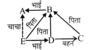 दिल्ली अधीनस्थ सेवा चयन बोर्ड परीक्षा, 2023 TGT कम्प्यूटर विज्ञान 24-06-2023 (Shift-III)Total Questions: 10011. शाम को, सूर्यास्त से पहले, X का मुख उस दिशा के दाहिने हाथ की ओर है जहाँ उसकी छाया पड़ रही है। फिर वह दाएं मुड़ता है और 20m चलता है। फिर, वह दोबारा दाएं मुड़ता है और 10m चलता है। फिर, वह बाएं मुड़ता है और 10m चलता है, और फिर दाएं मुड़कर 20m चलता है। फिर, वह दोबारा दाएं मुड़ता है और 30m चलता है। X अब आरंभिक बिंदु से कितनी दूरी पर और किस दिशा में है?(a) 20 m, दक्षिण(b) 30 m, उत्तर(c) 30 m, दक्षिण(d) 20 m, दक्षिणCorrect Answer: (b) 30 m, उत्तरSolution:प्रश्नानुसार, दिशा आरेख निम्नवत् है-अतः X अब आरंभिक बिंदु से (20+10) 30 मीटर की दूरी पर 'उत्तर' दिशा में है।12. एक कथन दिया गया है, जिसके बाद I और II क्रमांक की दो कार्रवाइयां दी गई हैं। आपको कथन में दी गई सभी बातों को सत्य मानना है, और कथन में दी गई जानकारी के आधार पर यह तय करना है कि कौन-सी सुझाई गई कार्रवाई/कार्रवाइयां अनुपालन के लिए तार्किक रूप से अनुसरण करती है/हैं।कथन :पिछले कुछ वर्षों में दहेज के झूठे मामले बढ़ रहे हैं।कार्रवाई :I. सरकार को स्थानीय पुलिस प्रशासन को निर्देश देना चाहिए, कि दहेज की शिकायतों की प्राथमिकी (FIR) दर्ज करने से पहले उन्हें ठीक से सत्यापित कर लें।II. स्थानीय पुलिस को दहेज के झूठे मामलों पर सख्त कार्रवाई करनी चाहिए।(a) I और II दोनों अनुसरण करते हैं।(b) केवल 1 अनुसरण करता है।(c) केवल II अनुसरण करता है।(d) या तो 1 या II अनुसरण करता है।Correct Answer: (a) I और II दोनों अनुसरण करते हैं।Solution:प्रश्न में दिए गए कथन के अनुसार कार्रवाई I व II दोनों अनुसरण करते हैं।13. एक ही पासे की तीन अलग-अलग स्थितियां दिखाई गई हैं। कौन-सा पैटर्न 'θ' दर्शाने वाले फलक के विपरीत फलक पर होगा?(a)(b)(c)(d)Correct Answer: (d)Solution:पासा 1 व 2 से दो सतह कॉमन नियम से-चिह्न'θ' का विपरीत चिह्न d होगा |14. यदि,P#Q का अर्थ है कि P, Q का भाई है,P@Q का अर्थ है कि P, Q के पिता हैं,और P&Q का अर्थ है कि P, Q की बहन है,तो व्यंजक A # B @ C & D #E में A का संबंध E से किस रूप में है?(a) मामा(b) पिता(c) चाचा(d) दादाCorrect Answer: (c) चाचाSolution:व्यंजक 'A # B @ C & D # E' में संबंध स्थापित करने पर-अतः आरेख से स्पष्ट है कि 'A', 'E' के चाचा हैं।15. AOPQRSTUVDEFMNWXBZGHIJKLYC उपरोक्त श्रृंखला में कितने अक्षर उसी स्थान पर स्थित हैं, जिस स्थान पर अंग्रेजी वर्णमाला में स्थित हैं?(a) चार(b) एक(c) तीन(d) दोCorrect Answer: (a) चारSolution:अंग्रेजी वर्णमाला श्रृंखला के क्रम में स्थित अक्षर निम्नवत् है-अतः स्पष्ट है कि श्रृंखला में A, M, N, Y (चार अक्षर) उसी स्थान पर स्थित हैं जिस स्थान पर अंग्रेजी वर्णमाला में स्थित होते हैं।16. दी गई जानकारी में, कथन और निष्कर्षों का ध्यानपूर्वक अध्ययन करें और तय करें कि दिए गए निष्कर्षों में से कौन-सा/से निष्कर्ष कथन का तार्किक रूप से अनुसरण करता/ते है/हैं।P#Q का अर्थ है कि P, Q से बड़ा है।P&Q का अर्थ है कि P, Q से या तो बड़ा है या उसके 