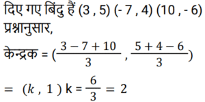 6. यदि बिंदु (3, 5), (-7, 4), (10, -6) से बने त्रिभुज का केंद्र बिंदु (k, 1) पर है तो k का मान है। [NTPC CBT - I 13/03/2021 (Morning)]