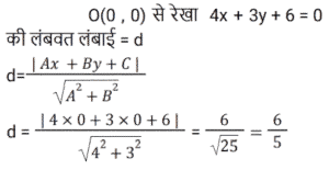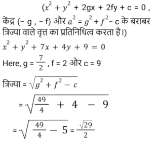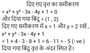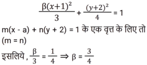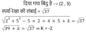निर्देशांक ज्यामितिTotal Questions: 5721. यदि (2, 5) से x² + y² - 5x + 4y + k = 0 तक स्पर्शिका की लंबाई √37 इक्काई है, तो k का मान क्या होगा? [RRB NTPC 08/02/2021 (Evening)](a) 2(b) 1(c) -2(d) -1Correct Answer: (c) -2Solution:22. निर्देशांक अक्ष के साथ रेखा 2x - 4y - 7 = 0 से बने त्रिभुज का क्षेत्रफल है: [RRB NTPC 11/02/2021 (Evening)](a)(b)(c)(d)Correct Answer: (d)Solution:23. दो बिंदुओं (a cosα, 0) और (0, a sinα) के बीच की दूरी कितनी है? [RRB NTPC 11/02/2021 (Evening)](a) a(b) |a|(c) |2a|(d) 2aCorrect Answer: (b) |a|Solution:24. यदि वृत्त x² + y² - 6x + 8y + c = 0 की त्रिज्या 6 है तो c का मान क्या होगा? [RRB NTPC 11/02/2021 (Evening)](a) -10(b) -11(c) 11(d) 25Correct Answer: (b) -11Solution:25. वृत्त के संदर्भ में बिंदु (1, 2) की स्थिति क्या है? x² + y² - 3x - 4y + 1 = 0 [RRB NTPC 22/02/2021 (Morning)](a) वृत्त पर स्थित है(b) वृत्त के बाहर स्थित है(c) वृत्त के भीतर है(d) ज्ञात नहीं किया जा सकताCorrect Answer: (c) वृत्त के भीतर हैSolution:26. β(x + 1)² / 3 + (y + 2)² / 4 = 1 एक वृत्त है तो β का मान ज्ञात कीजिए? [RRB NTPC 02/03/2021 (Evening)](a) 4/3(b) 3/4(c) 1(d) 12Correct Answer: (b) 3/4Solution:27. वृत्त x² + y² + 7x + 4y + 9 = 0 की त्रिज्या ज्ञात कीजिए? [RRB NTPC 04/03/2021 (Morning)](a) √19/2(b) √13/2(c) √23/2(d) √29/2Correct Answer: (d) √29/2Solution:28. मूल बिंदु से रेखा 4x + 3y + 6 = 0 की दूरी है: [RRB NTPC 04/03/2021 (Morning)](a) 7/5(b) 4/5(c) 6/5(d) 3/5Correct Answer: (c) 6/5Solution:29. निर्देशांक अक्ष के साथ समतल 3x - 4y - 2z = 6 द्वारा किए गए अंत:खंड हैं: [RRB NTPC 07/03/2021 (Evening)](a)(b)(c)(d)Correct Answer: (d)Solution:30. यदि दो बिंदुओं (x, 7) और (1, 15) के बीच की दूरी 10 इकाई है, तो x का संभवित मान =? [RRB NTPC 08/03/2021 (Evening)](a) 7, -5(b) 4, 5(c) 5, -7(d) 3, 7Correct Answer: (a) 7, -5Solution:Submit Quiz« Previous123456Next »