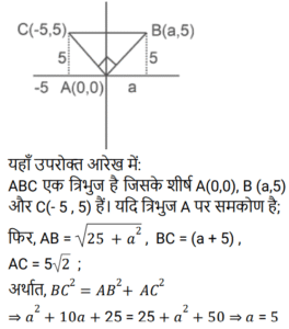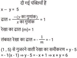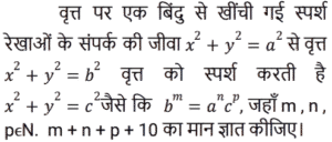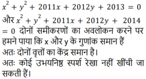 निर्देशांक ज्यामितिTotal Questions: 5741. रैखिक समीकरण 35x - 35y + 15 = 0 और x - अक्ष के ग्राफ के बीच का कोण का माप है | [RRB NTPC 05/04/2021 (Evening)](a) 55°(b) 35°(c) 50°(d) 45°Correct Answer: (d) 45°Solution:42. दिए गए प्रश्न का उत्तर ज्ञात कीजिए ? [RRB NTPC 07/04/2021 (Morning)](a) 8(b) 10(c) 14(d) 12Correct Answer: (c) 14Solution:43. एक वृत्त की त्रिज्या 3 इकाई है और इसका केंद्र रेखा y = x - 1 पर स्थित है। वृत्त का समीकरण ज्ञात कीजिए यदि वह बिंदु (3, 3) से गुजरता है। [RRB NTPC 07/04/2021 (Morning)](a) x² + y² - 8x - 6y + 16 = 0(b) x² + y² - 8x - 6y + 16 = 0(c) x² + y² + 8x + 6y + 16 = 0(d) x² + y² + 8x - 6y + 16 = 0Correct Answer: (b) x² + y² - 8x - 6y + 16 = 0Solution:44. वृत्त x² + y² + 2011x + 2012y + 2013 = 0 के किसी भी बिंदु से वृत्त x² + y² + 2011x + 2012y + 2014 = 0 पर स्पर्श रेखा की लंबाई ज्ञात कीजिए। [RRB NTPC 07/04/2021 (Morning)](a) 5(b) 1(c) 0(d) कोई उपमनिम स्पर्श रेखा नहीं खींची जा सकतीCorrect Answer: (d) कोई उपमनिम स्पर्श रेखा नहीं खींची जा सकतीSolution:45. यदि एक बिंदु (1, 2) का एक्स-अक्ष की सकारात्मक दिशा के माध्यम से 2 इकाइयों तक खींचा जाता है और फिर बिंदु से वृत्त x² + y² = 9, पर खींची गई स्पर्श रेखाएँ, स्पर्श रेखाओं के बीच का कोण ज्ञात करें। [RRB NTPC 07/04/2021 (Morning)](a) tan⁻¹(5/3)(b) 2tan⁻¹(1/3)(c) 2tan⁻¹(3/2)(d) 2tan⁻¹(2/3)Correct Answer: (c) 2tan⁻¹(3/2)Solution:46. एक समान्तर चतुर्भुज PQRS में, P = (-1, -1), Q = (8, 0) और R = (7, 5). 'S' के निर्देशांक क्या हैं? [RRB NTPC 23/07/2021 (Evening)](b)(a)(c)(d)Correct Answer: (b)Solution:47. बिंदु (2, 3) से वृत्त x² + y² = 4 तक स्पर्श रेखा की लंबाई ज्ञात कीजिए। [RRB NTPC 23/07/2021 (Evening) ](a) 3(b) 4(c) 1(d) 2Correct Answer: (a) 3Solution:48. एक रेखा का समीकरण, जो एक बिंदु (1, 5) से होकर जाता है और रेखा x - y = 5 के लंबवत है: [RRB NTPC 24/07/2021 (Morning)](a) y - x = 4(b) x + y = 6(c) x - y = 6(d) x - y = 4Correct Answer: (b) x + y = 6Solution:49. △ABC एक त्रिभुज है जिसके शीर्ष A(0, 0), B(a, 5) और C(-5, 5) हैं। यदि त्रिभुज A पर समकोण है, तो a का मान ज्ञात कीजिए। [RRB NTPC 26/07/2021 (Morning)](a) 2(b) 5(c) 6(d) 3Correct Answer: (b) 5Solution:50. x - अक्ष पर उन बिंदुओं की संख्या ज्ञात कीजिए जो बिंदु (2, 3) से 'c' इकाई (c < 3) की दूरी हैं। [RRB NTPC 26/07/2021 (Morning)](a) 0(b) 1(c) 2(d) 3Correct Answer: (a) 0Solution:Submit Quiz« Previous123456Next »