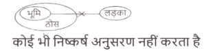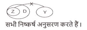 न्यायवाक्य (भाग-V)Total Questions: 6331. दिए गए निष्कर्षों में से कौन सा कथन से तार्किक रूप से अनुसरण करता है। [SSC MTS 17/05/2023 (Morning)]कथन : I. कोई कुर्सी, ठोस नहीं है। ।।. कोई मेज, ठोस नहीं है। निष्कर्ष : I. कुछ मेज, कुर्सी हैं। ।।. कोई ठोस, कुर्सी नहीं है।(a) केवल निष्कर्ष ।। कथनों के अनुसार है।(b) कोई भी निष्कर्ष कथनों के अनुसार नहीं है।(c) दोनों निष्कर्ष। और ।। कथनों के अनुसार है।(d) केवल निष्कर्ष। कथनों के अनुसार है।Correct Answer: (a) केवल निष्कर्ष ।। कथनों के अनुसार है।Solution:32. दिए गए निष्कर्षों में से कौन सा कथन से तार्किक रूप से अनुसरण करता है। [SSC MTS 13/06/2023 (Morning)]कथन : कुछ चीटियाँ, चमगादड़ हैं। कुछ चमगादड़, बिल्लियाँ हैं। निष्कर्ष : I. कुछ चींटियाँ, बिल्लियाँ हैं। ॥. सभी चमगादड़ कभी भी बिल्लियाँ नहीं हो सकती ।(a) न तो निष्कर्ष। और न ही । अनुसरण करता है(b) केवल निष्कर्ष। अनुसरण करता है।(c) केवल निष्कर्ष ।। अनुसरण करता है।(d) दोनों निष्कर्ष। और । अनुसरण करते हैं।Correct Answer: (a) न तो निष्कर्ष। और न ही । अनुसरण करता हैSolution:33. दिए गए निष्कर्षों में से कौन सा कथन से तार्किक रूप से अनुसरण करता है। [SSC MTS 14/06/2023 (Evening)]कथन : सभी कीलें, सुईयाँ हैं। कुछ सुईयाँ, मेज़ हैं। कोई सुई, डिब्बा नहीं है। निष्कर्ष : I. कोई मेज़, डिब्बा नहीं है। ।।. कुछ कीलें, मेज़ हैं।(a) सिर्फ निष्कर्ष । कथनों के अनुसार है(b) निष्कर्ष। और ।। में से कोई भी कथनों के अनुसार नहीं है(c) दोनों निष्कर्ष। और ।। कथनों के अनुसार हैं(d) सिर्फ निष्कर्ष। कथनों के अनुसार हैंCorrect Answer: (b) निष्कर्ष। और ।। में से कोई भी कथनों के अनुसार नहीं हैSolution:34. दिए गए निष्कर्षों में से कौन सा कथन से तार्किक रूप से अनुसरण करता है। [SSC MTS 16/06/2023 (Afternoon)]कथन : I. सभी भूमि, ठोस हैं। II. कोई भूमि, लड़का नहीं है। निष्कर्ष : ।. सभी ठोस, भूमि हैं। ।।. सभी लड़के, ठोस हैं।(a) केवल निष्कर्ष । कथनों के अनुसार है(b) दोनों निष्कर्ष। और ।। कथनों के अनुसार हैं(c) कोई भी निष्कर्ष कथनों के अनुसार नहीं है(d) केवल निष्कर्ष। कथनों के अनुसार हैCorrect Answer: (c) कोई भी निष्कर्ष कथनों के अनुसार नहीं हैSolution:35. दिए गए निष्कर्षों में से कौन सा कथन से तार्किक रूप से अनुसरण करता है। [SSC MTS 20/06/2023 (Evening)]कथन : सभी श्रृंखला, वृत्त हैं। कोई श्रृंखला, वर्ग नहीं है। निष्कर्ष : I. कुछ वृत्त, वर्ग हैं। ।।. कुछ वृत्त, श्रृंखला हैं।(a) न तो निष्कर्ष। और न ही ।। कथनों के अनुसार है(b) केवल निष्कर्ष ।। कथनों के अनुसार है(c) दोनों निष्कर्ष। और ।। कथनों के अनुसार हैं(d) केवल निष्कर्ष। कथनों के अनुसार हैCorrect Answer: (b) केवल निष्कर्ष ।। कथनों के अनुसार हैSolution:36. दिए गए निष्कर्षों में से कौन सा कथन से तार्किक रूप से अनुसरण करता है। [SSC CHSL 09/03/2023 (1st Shift)] कथन : I. सभी Z, D हैं। ॥. कोई भी Y, Z नहीं है। निष्कर्ष : I. कुछ D, Y नहीं हैं। II. कुछ Z, Y नहीं हैं। III. कुछ D, Z हैं।(a) सभी निष्कर्ष कथनों के अन