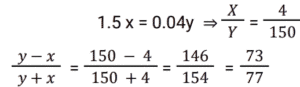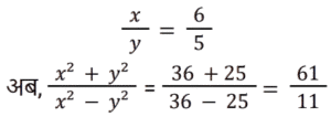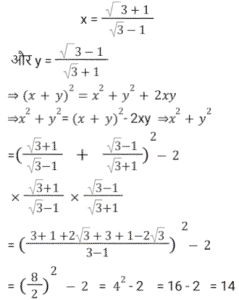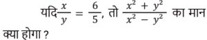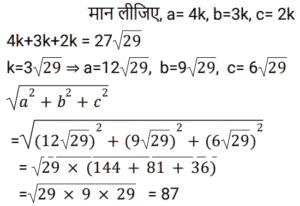 बीजगणित Part-7Total Questions: 5041. यदि x × y = x + y + √(xy) तो 6 × 24 का मान क्या होगा ? [RRB NTPC 08/02/2021 (Evening)](a) 43(b) 41(c) 42(d) 44Correct Answer: (c) 42Solution:42. समीकरण x² − 7x + 12 = 0 के मूल क्या होंगे ? [RRB NTPC 08/02/2021 (Evening)](a) 3, 4(b) 5, 6(c) 2, 3(d) 7, 8Correct Answer: (a) 3, 4Solution:43. निम्नलिखित को हल कीजिये ? [RRB NTPC 09/02/2021 (Morning)](a) x² + 11xy/30 − y²(b) x + 11xy/30 − y²(c) x² + 11xy/30 − y(d) y²Correct Answer: (a) x² + 11xy/30 − y²Solution:44. यदि a + b + c = 8 और b और c दोनों शून्य से अधिक धनात्मक पूर्णांक हैं, तो 'a' का अधिकतम मान क्या होगा ? [RRB NTPC 09/02/2021 (Evening)](a) 6(b) 10(c) 8(d) 0Correct Answer: (a) 6Solution:45. यदि 1.5x = 0.04y है तो (y − x)/(y + x) का मान क्या होगा ? [RRB NTPC 10/02/2021 (Morning)](a) 73/77(b) 70/77(c) 77/73(d) 72/77Correct Answer: (a) 73/77Solution:46. यदि 3a = 4b = 6c और a + b + c = 27√29, तो √(a² + b² + c²) का मान क्या होगा ? [RRB NTPC 10/02/2021 (Morning)](a) 3√81(b) 81(c) 85(d) 87Correct Answer: (d) 87Solution:47. उस पद का चयन कीजिये जो निम्नलिखित समीकरण में प्रश्नवाचक चिन्ह (?) को प्रतिस्थापित कर सकता है [RRB NTPC 10/02/2021 (Morning)](2a³ − 3)(5a³ − 2) = 10a⁶ + ? + 6(a) 19a²(b) −19a³(c) 19a³(d) 19Correct Answer: (b) −19a³Solution:48. दिए गए प्रश्न का उत्तर ज्ञात कीजिए ? [RRB NTPC 10/02/2021 (Evening)](a) 0.144 (b) 0.01044 (c) 0.0144(d) 0.00144Correct Answer: (c) 0.0144Solution:49. दिए गए प्रश्न का उत्तर ज्ञात कीजिए ? [RRB NTPC 11/02/2021 (Morning) ](a) 61/11 (b) 60/11 (c) 11/61 (d) 60/34Correct Answer: (a) 61/11 Solution:50. दिए गए प्रश्न का उत्तर ज्ञात कीजिए ? [RRB NTPC 11/02/2021 (Evening)](a) 14 (b) 13 (c) 10 (d) 15Correct Answer: (a) 14 Solution:Submit Quiz« Previous12345