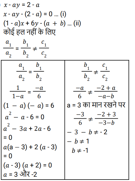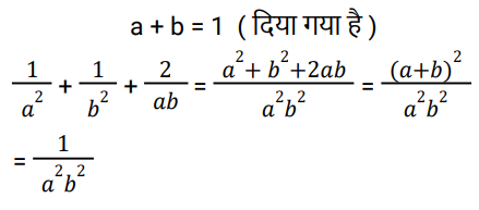 बीजगणित (SSC) (Part-II)Total Questions: 5041. निम्नलिखित समीकरणों का हल है: [SSC CGL 13/09/2024 (1st Shift)]5x + 4y - 8z = 1 7x - 9y + z = - 1 2x + 3y - 4z = 1(a) x = - 1,y = 1,z = 1(b) x = 1,y = 1,z = 1(c) x = 1,y = - 1,z = 1(d) x = 1,y = 1,z = - 1Correct Answer: (b) x = 1,y = 1,z = 1Solution:42. दिए गए प्रश्न का उत्तर ज्ञात कीजिए ? [SSC CGL 13/09/2024 (2nd Shift)](a)(b)(c)(d)Correct Answer: (a)Solution:43. निम्नलिखित में से a और b के किन मानों के लिए दिए गए समीकरणों में कोई हल नहीं है? [SSC CGL 13/09/2024 (2nd Shift)]x - ay = 2 - a (1 - a) x + 6y = a + b(a) a = -3, b ≠ 1(b) a = 3, b ≠-1(c) a = -3, b ≠ -1(d) a = 3, b ≠ 1Correct Answer: (b) a = 3, b ≠-1Solution:44. दिए गए प्रश्न का उत्तर ज्ञात कीजिए ? [SSC CGL 13/09/2024 (3rd Shift)](a) a² b²(b) 1- a² b²(c) a²b² + 2(d) a²b² + 1Correct Answer: (d) a²b² + 1Solution:45. k, के किस मान के लिए, समीकरण निकाय k𝑥 - 15y + 7 = 0 और 7𝑥 - 21y - 19 = 0 का कोई हल नहीं है? [SSC CGL 17/09/2024 (1st Shift)](a) 5(b) 12(c) 25(d) 6Correct Answer: (a) 5Solution:46. दिए गए प्रश्न का उत्तर ज्ञात कीजिए ? [SSC CGL 17/09/2024 (1st Shift)](a) 884(c) 876(d) 754(d) 756Correct Answer: (d) 756Solution:47. दिए गए प्रश्न का उत्तर ज्ञात कीजिए ? [SSC CGL 17/09/2024 (3rd Shift)](a) 63/6(b) 63/8(c) 36/8(d) 32/6Correct Answer: (b) 63/8Solution:48. पाँच क्रमागत संख्याओं का योग 80 है। सबसे बड़ी संख्या ज्ञात कीजिए। [SSC CGL 18/09/2024 (1st Shift)](a) 18(b) 15(c) 19(d) 14Correct Answer: (a) 18Solution:49. दिए गए प्रश्न का उत्तर ज्ञात कीजिए ? [ SSC CGL 18/09/2024 (1st Shift)](a) 188(b) 194(c) 186(d) 196Correct Answer: (b) 194Solution:50. यदि निम्नलिखित समीकरणों की प्रणाली में चरों का मान लगातार तीन पूर्णांकों के रूप में है, तो a का मान ____ है। [SSC CGL 18/09/2024 (1st Shift)]x - y + z = 2a x + 4y - 2z = 3(4 - a) 2x - 3y + 4z = 6 - 2a(a) 2(b) 4(c) 1(d) 3Correct Answer: (c) 1Solution:Submit Quiz« Previous12345