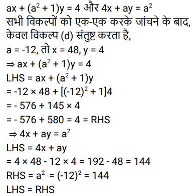 5. समीकरण ax + (a² + 1)y = 4 और 4x + ay = a² के लिए, निम्नलिखित में से कौन-सा कथन सत्य है? [SSC CGL 19/09/2024 (3rd Shift)]