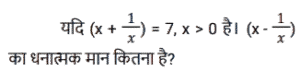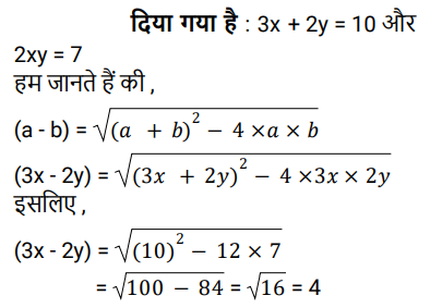 8. यदि 3x + 2y = 10 और 2xy = 7 है, तो 3x -2y का मान ज्ञात कीजिए (यदि 3x - 2y > 0) । [SSC CGL 23/09/2024 (3rd Shift)]