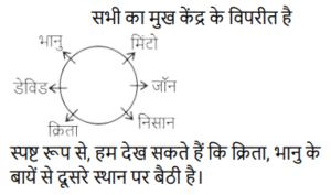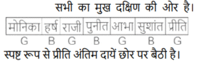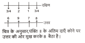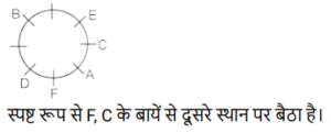 बैठने की व्यवस्था (भाग-I)Total Questions: 5011. A, B और C एक बेंच पर दक्षिण की ओर मुख करके बैठे हैं। D, E, और F एक समानांतर बेंच पर उत्तर की ओर मुख करके बैठे हैं। D किसी एक सिरे पर और F के ठीक बाई ओर बैठा है B, D की ओर उन्मुख होकर बैठा है। C, A के दाईं ओर बैठा है। A की ओर उन्मुख होकर कौन बैठा है? [SSC MTS 03/05/2023 (Evening)](a) E(b) C(c) D(d) FCorrect Answer: (a) ESolution:12. आठ व्यक्ति दो समानांतर पंक्तियों में प्रत्येक में 4 व्यक्ति इस प्रकार बैठे हैं कि आसन्न व्यक्तियों के बीच समान दूरी है। पंक्ति। में-1,2, 3 और 4 बैठे हैं और उन सभी का मुख दक्षिण की ओर है। पंक्ति ॥ में- 6, 7, 8 और 9 बैठे हैं और उन सभी का मुख उत्तर की ओर है। 1 और 2 अंतिम छोर पर नहीं बैठे हैं और 1, 2 के ठीक बाईं ओर बैठा है। 9 & 7, 1 & 2 के विपरीत बैठे हैं और 7, 1 के ठीक विपरीत बैठा है। 7, 6 का निकटतम पड़ोसी नहीं है। पंक्ति ॥ के अंतिम दाएँ कोने पर उत्तर की ओर मुख करके कौन बैठा है? [SSC CPO 09/11/2022 (Morning)](a) 8(b) 7(c) 9(d) 6Correct Answer: (a) 8Solution:13. J, K, L, M और N एक बेंच पर बैठे हैं। J, K का निकटतम पडोसी है; M, N का निकटतम पडोसी है, और J, L के साथ नहीं बैठा है जो बेंच के दाएँ छोर पर बैठा है। J, M और N के दाएँ बैठा है। M, N के दाएँ बैठा है। J किस स्थिति में बैठा है? [ SSC MTS 06/07/2022 (Afternoon)](a) बाएं से तीसरा(c) बाएं से दूसरा(b) बाएं से चौथा(d) दाएं से दूसराCorrect Answer: (a) बाएं से तीसराSolution:14. चार पुरुष P1, P2, P3 और P4 एक पंक्ति में उत्तर की ओर मुख करके (आवश्यक नहीं है कि इसी क्रम में हों) बैठे हैं, और चार महिलाएँ A1, A2, A3 और A4 एक पंक्ति में इन पुरुषों के मुख की ओर मुख करके (आवश्यक नहीं है कि इसी क्रम में हों) बैठी हैं। P1 और P4 छोरों पर बैठे हैं। A3 और P2 एक दूसरे के सामने बैठे हैं। A4, A3 के बाईं ओर दूसरे स्थान पर बैठी है। P4, A1 के सामने बैठा है। A1 और A4 छोरों पर बैठी हैं। निम्नलिखित में से कौन से कथन सही हैं? 1. A4, P1 के सामने बैठी है। II. P4 उस पुरुष के बाईं ओर दूसरे स्थान पर बैठा है, जो A2 के सामने बैठा है। [ SSC MTS 05/07/2022 (Morning)](a) केवल ॥(b) न तो। और न ही ॥(c) केवल ।(d) । और ।। दोनोंCorrect Answer: (d) । और ।। दोनोंSolution:15. नौ कर्मचारी, K, L, M, N, O, P, Q, R और S एक सीधी रेखा में पूर्व की और मुख करके बैठे है। O, M के दायें से तीसरे स्थान पर है। K, P के बायें से तीसरे स्थान पर है। Q, P और S के बीच में है। N, M के दायें चौथा है। P, N के ठीक दायें है। R, O के बायें चौथा है। निम्नलिखित में से कौन सा कथन सही नहीं है? [SSC CGL 18/04/2022 (Morning)](a) R और S कोनों पर बैठे हैं।(b) L, O के बायें से तीसरे स्थान पर बैठा है।(c) Q, K के दायें चौथे स्थान पर बैठा है।(d) O, K और N के बीच बैठा है।Correct Answer: (b) L, O के बायें से तीसरे स्थान पर बैठा है।Solution:16. छह मित्र डेविड, भानु, मिंटो, क्रिता, जॉन और निसान एक वृत्ताकार मेज के चारों ओर केंद्र की विपरीत दिशा की तरफ मुख करके बैठे हैं। डेविड और मिंटो क्रमशः भानु के ठीक बाएँ और दाएँ बैठे हैं। जॉन, डेविड के ठीक बायें नहीं बैठा है। निसान, भानु के दायें से तीसरा हैं। भानु के बाएं से दूस