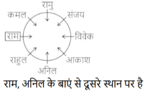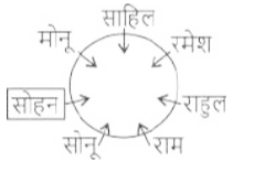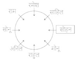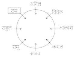 बैठने की व्यवस्था (भाग-III)Total Questions: 501. सात लड़के राहुल, राम, रमेश, सोहन साहिल, सोनू और मोनू एक वृत्ताकार मेज के चारों ओर केंद्र की ओर मुख करके बैठे हैं (परंतु जरूरी नहीं कि वे इसी क्रम में बैठें हों)। मोनू, सोनू के बाईं ओर से दूसरे स्थान पर है। सोनू, राहुल के बाईं ओर से दूसरे स्थान पर है। साहिल, सोनू का निकटतम पड़ोसी नहीं है। साहिल, राम के दाईं ओर से तीसरे स्थान पर है। सोहन, रमेश के दाईं ओर से तीसरे स्थान पर है। राहुल के बाईं ओर से तीसरे स्थान पर कौन है? [SSC MTS 12/05/2023 (Afternoon)](a) सोहन(b) राम(c) साहिल(d) रमेशCorrect Answer: (a) सोहनSolution:2. छः महिलाएँ अनु, प्रीति, आरती, कीर्ति, पूनम और सुमन एक वृत्ताकार मेज पर केंद्र की ओर मुख करके बैठी हैं। प्रीति, पूनम के सम्मुख बैठी है। पूनम, कीर्ति और अनु के ठीक बीच में बैठी है। आरती, अनु के ठीक दाएँ पर बैठी है। प्रीति के ठीक दाएँ पर कौन बैठा है? [SSC MTS 15/05/2023 (Afternoon)](a) सुमन(b) कीर्ति(c) आरती(d) अनुCorrect Answer: (a) सुमनSolution:3. पाँच लड़कियाँ अर्थात् B, H, O, M और S एक वृत्ता में केंद्र की ओर मुख करके बैठी हैं। S, 0 के ठीक बाईं ओर, और B के ठीक दाईं ओर बैठी है। M, S के बाएँ से दूसरे स्थान पर बैठी है। H के ठीक दाईं ओर कौन बैठा है? [SSC MTS 15/05/2023 (Evening)](a) S(b) M(c) B(d) 0Correct Answer: (b) MSolution:4. आठ मित्र अनिल, कमल, राम, संजय, आकाश, विवेक, राहुल और रामू एक वृत्ताकार मेज के चारों ओर केंद्र की ओर मुख करके बैठे हैं (परंतु जरूरी नहीं कि वे इसी क्रम में बैठे हों)। व्यवस्था राम, अनिल के ठीक दाईं ओर है। अनिल, संजय के दाईं ओर से चौथे स्थान पर है। राहुल, आकाश के बाईं ओर से चौथे स्थान पर है। आकाश, अनिल के बाईं ओर से दूसरे स्थान पर है। रामू, कमल के बाईं ओर से दूसरे स्थान पर है। विवेक, कमल के दाईं ओर से दूसरे स्थान पर है। विवेक के दाईं ओर से दूसरे स्थान पर कौन है? [SSC MTS 16/05/2023 (Morning)](a) आकाश(b) राम(c) रामू(d) विवेकCorrect Answer: (b) रामSolution:5. आठ मित्र राहुल, राम, रमेश, सोहन, साहिल, अनिल, सोनू और मोनू एक वृत्ताकार मेज के चारों और केंद्र की ओर मुख करके बैठे हैं (परंतु जरूरी नहीं कि वे इसी क्रम में बैठे हों)। साहिल, सोनू के बाईं ओर से तीसरे स्थान पर है। सोनू, राम के ठीक दाई ओर है। राम, राहुल के बाईं ओर से तीसरे स्थान पर है। मोनू, अनिल के दाईं ओर से दूसरे स्थान पर है। अनिल, साहिल का निकटतम पड़ोसी नहीं है। सोहन राम का निकटतम पड़ोसी नहीं है। राम के बाईं ओर से तीसरे स्थान पर कौन है? [SSC MTS 16/05/2023 (Morning)](a) सोहन(b) साहिल(c) राहुल(d) सोनूCorrect Answer: (a) सोहनSolution:6. पांच छात्र A, M, C, Y और G, एक वृत्ताकार मेज के चारों ओर केंद्र के विपरीत दिशा की और मुख करके बैठे हैं, लेकिन जरूरी नहीं कि इसी क्रम में हों। M, A के ठीक बाईं ओर और G के ठीक दाईं ओर बैठा है। Y, A का निकटतम पड़ोसी नहीं है। G के बाएं दूसरे स्थान पर कौन बैठा है? [SSC MTS 16/05/2023 (Afternoon)](a) Y(b) M(c) A(d) CCorrect Answer: (d) CSolution:7. सात श्रमिक राहुल, राम, रमेश, सोहन, साहिल, अनिल और सोनू एक 