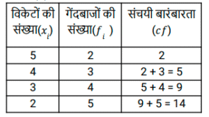 8. नीचे दिए गए आंकड़ों में प्रत्येक गेंदबाज़ के द्वारा लिए गए विकटों की संख्या तथा इन विकटों को लेने वाले गेंदबाजों की संख्या दी गयी है। [SSC MTS 07/08/2019 (Afternoon)]