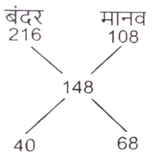 6. किसी पार्क में एक निश्चित समय पर बंदरों और मानव आगंतुकों के सिरों की संख्या और पैरों की संख्या की गिनती की गई और यह पाया गया कि 54 सिर और 148 पैर थे। पार्क में बंदरों की संख्या ज्ञात कीजिए। [SSC CGL Tier II (26/10/2023)]