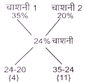 10. एक जार में चाशनी और पानी के मिश्रण में 35% चाशनी है। इस मिश्रण के एक भाग को, दूसरे मिश्रण से प्रतिस्थापित कर दिया जाता है जिसमें 20% चाशनी है। अब इस नए मिश्रण में, चाशनी का प्रतिशत 24% हो जाती है। नया मिश्रण प्राप्त करने के लिए इन मिश्रणों को किस अनुपात में मिलाया गया था ? [SSC CHSL 07/08/2023 (2nd Shift)]
