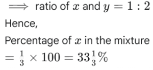1. एक व्यक्ति दो तरल पदार्थ x और y मिलाता है। एक लीटर x का वजन लगभग 900 g है, और एक लीटर y का वजन लगभग 750 g है। यदि एक लीटर मिश्रण का वजन लगभग 800 g है, तो मिश्रण में x का कितना प्रतिशत होगा ? [Higher Secondary 25/06/2024 (Shift - 4)]