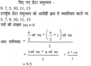 Solution:प्रश्नगत डेटा समुच्चय आरोही क्रम में व्यवस्थित है- 9, 12, 14, 16, 18, 49इस प्रकार के आँकड़ों के विश्लेषण के लिए माध्यिका केन्द्रीय प्रवृत्ति की माप सर्वाधिक उपयुक्त होगी। माध्यिका केन्द्रीय प्रवृत्ति की वह माप होती है जो विवरण के मध्यांक का नेतृत्व करती है।