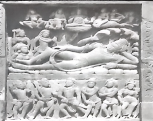 Solution:पैनल की निम्न तक की आकृतियाँ आयुध पुरुष और दैत्य है। यह चित्र देवगढ के दशावतार मंदिर का है। यह मंदिर विष्णु को समर्पित है लेकिन इसमें शिव पार्वती, ब्रह्मा, कार्तिकेय व गंगा, यमुना जैसे देवी-देवता भी है।